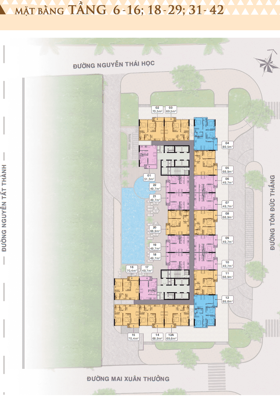 | Mật độ xây dựng: | 57,8%, trong đó: Mật độ khối đế là 57,3% & Khối tháp là 43,7% |