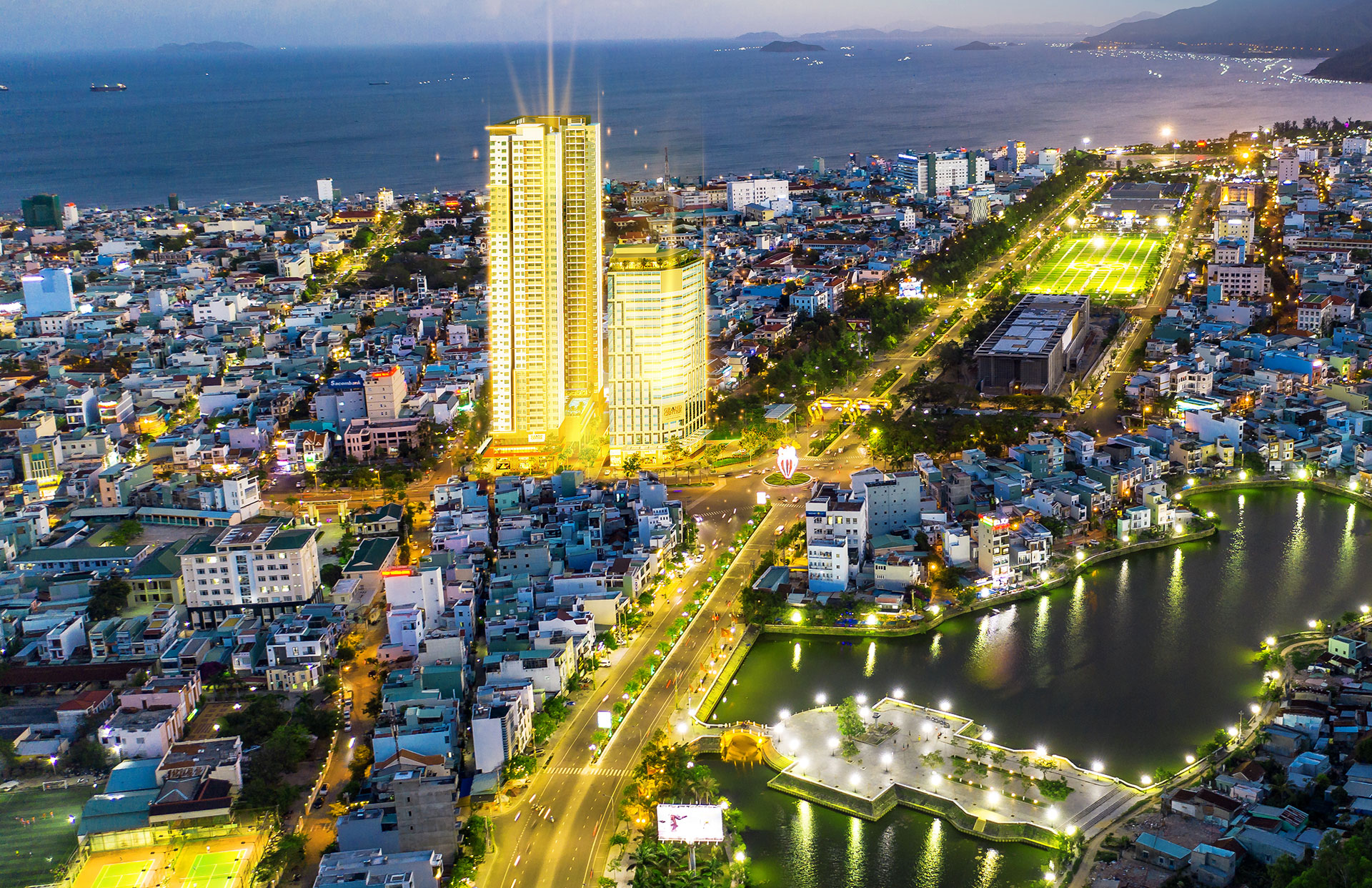 Với tầm nhìn khoáng đạt, từ Grand Center Quy Nhon, quý chủ nhân còn được ngắm nhìn toàn cảnh thành phố yên bình hay thỏa sức chiêm ngưỡng những màn pháo hoa rực rỡ mỗi dịp lễ hội và không khí rộn ràng của đường hoa Nguyễn Tất Thành trong khúc giao mùa ngân vang.