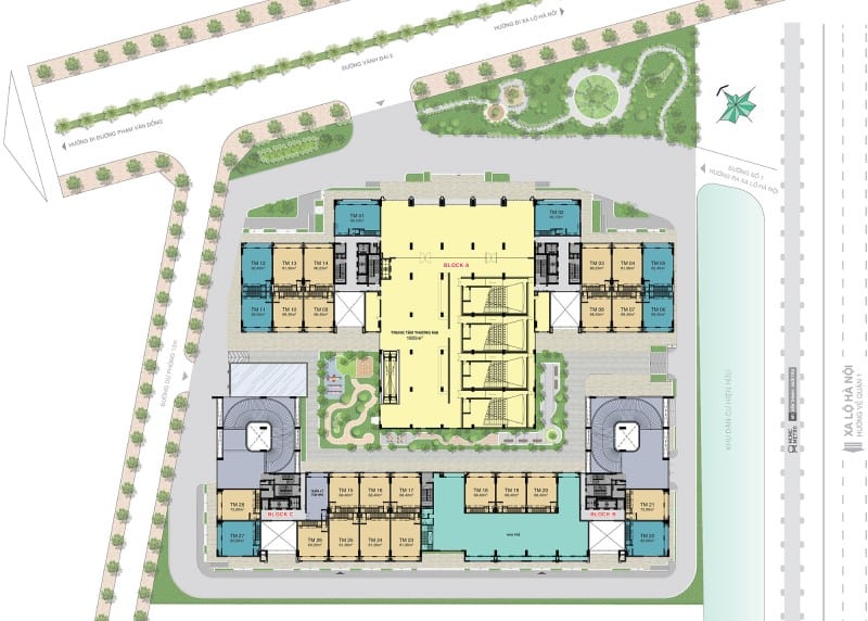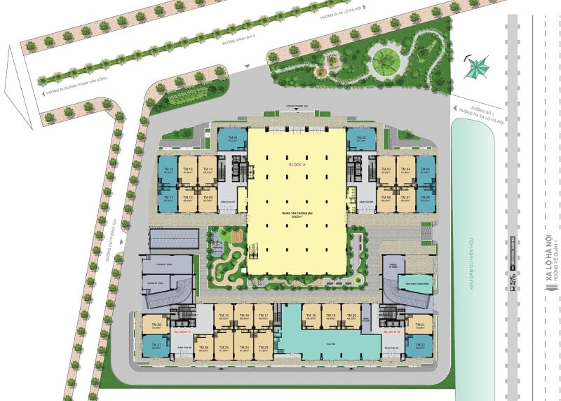 | Căn trệt thương mại | 28 căn và 1 khu trung tâm thương mại |