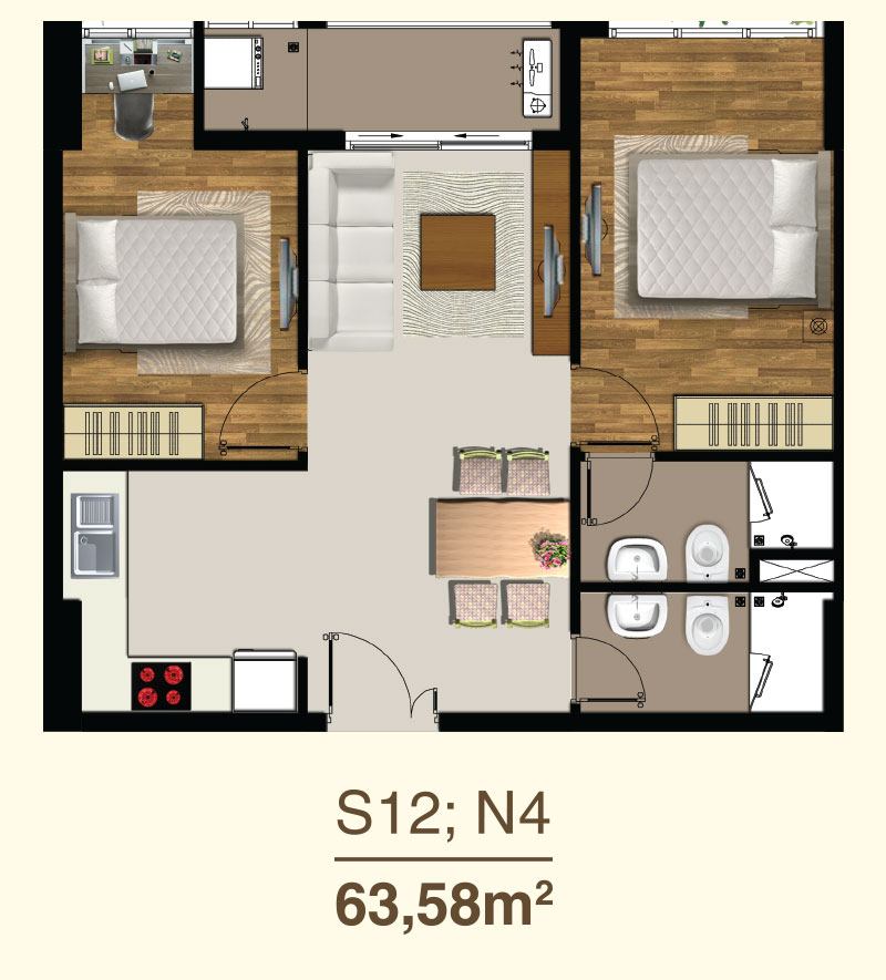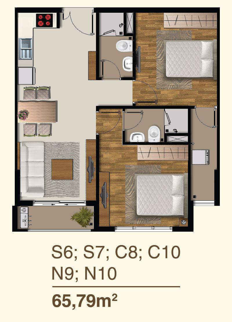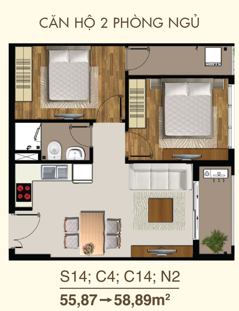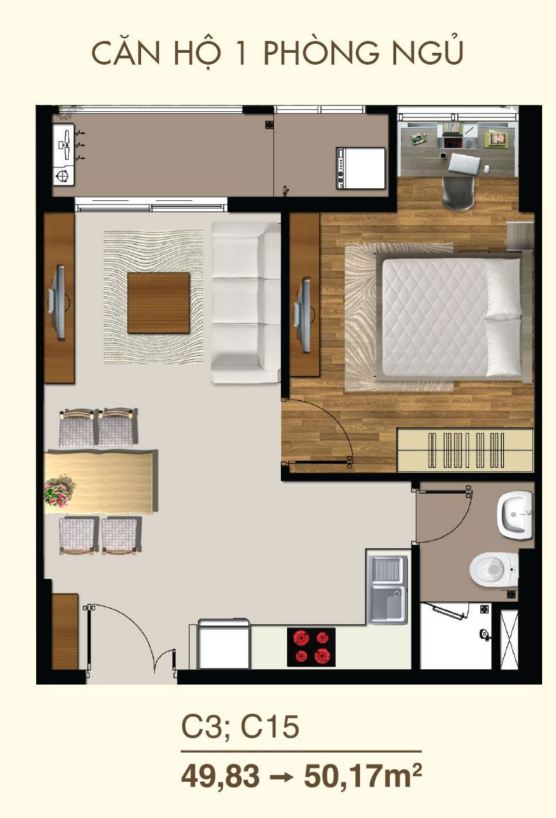 | Diện tích căn hộ | 49,83m2 – 83,05m2 (1-3 phòng ngủ) |