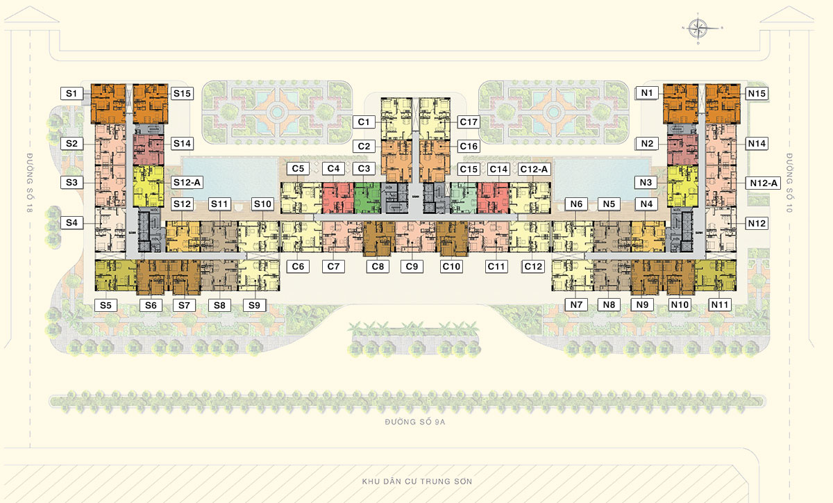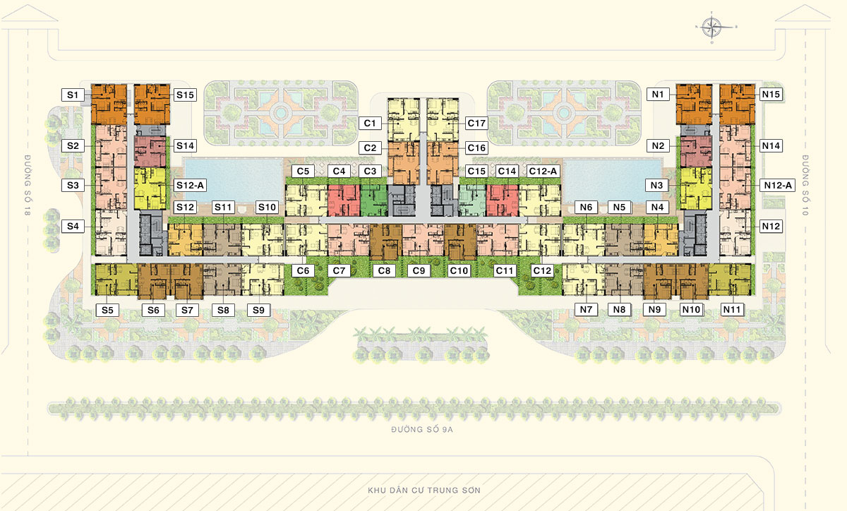 | Số tòa căn hộ | 03 block (Southern – Northern – Central) |