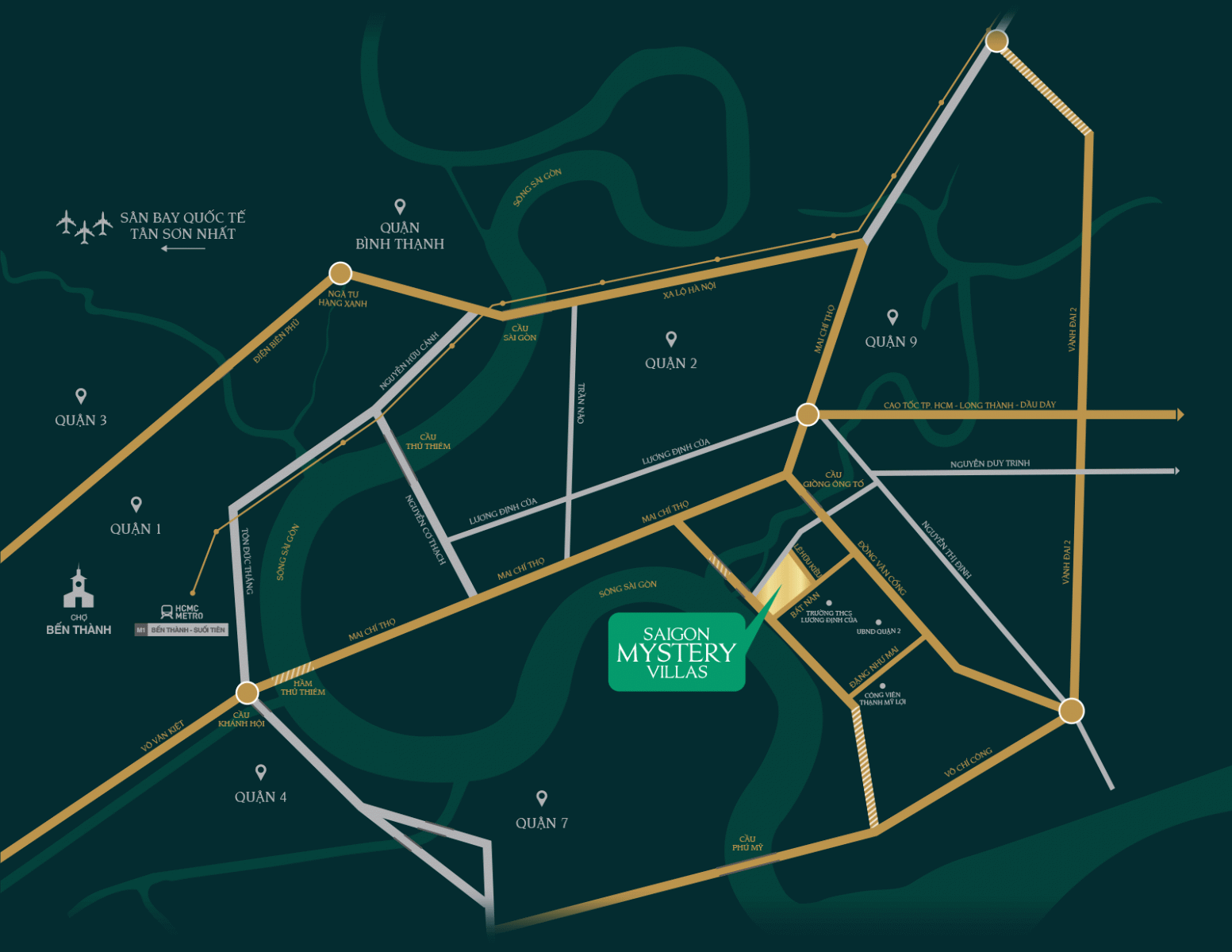 Sài Gòn Mystery Villas tọa lạc ngay Đảo Kim Cương - Phường Thạnh Mỹ Lợi - Quận 2