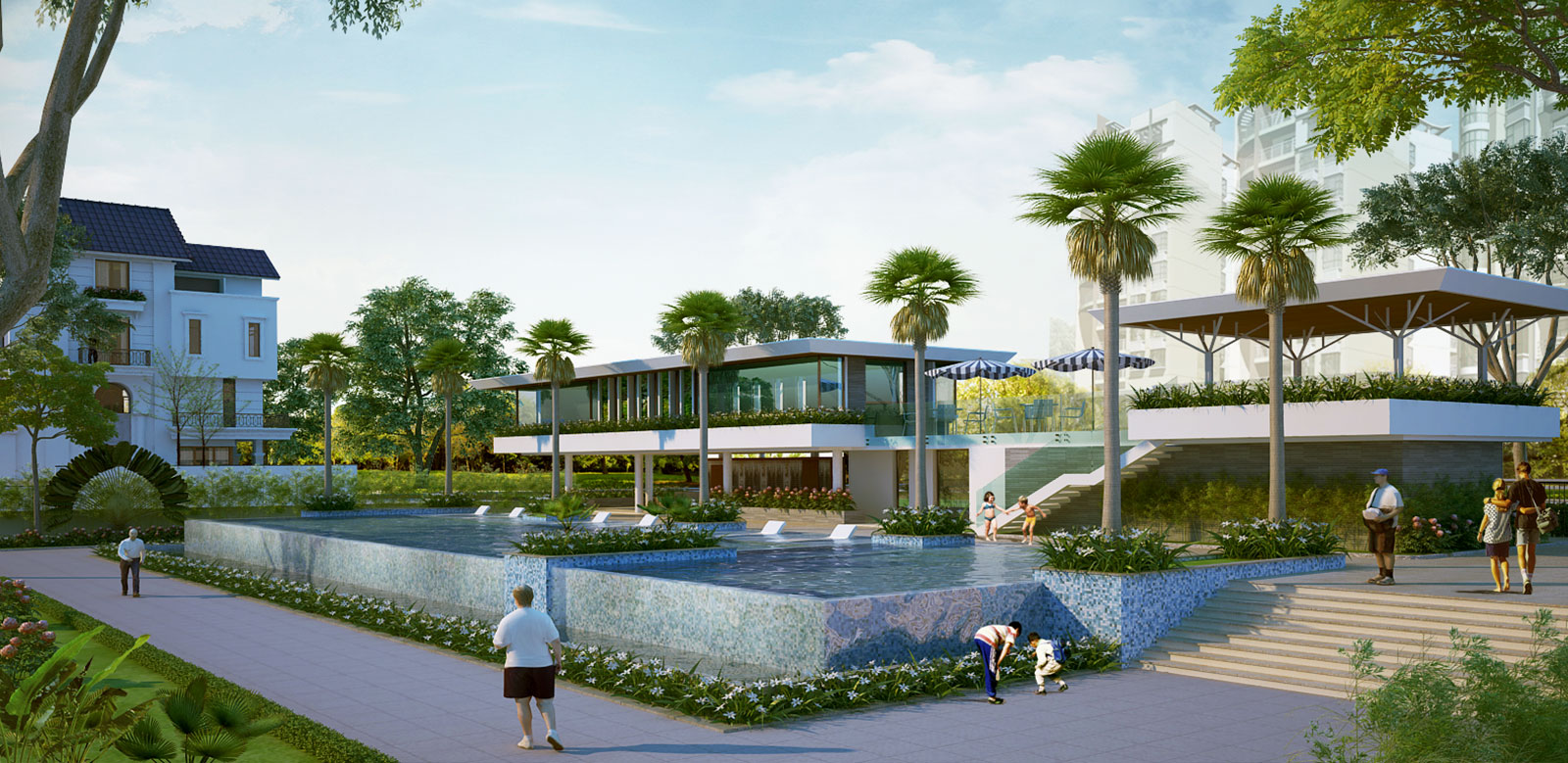 | Tiện ích khu biệt thự | Kênh cảnh quan, Sân Tennis, sân chơi trẻ em, bến du thuyền, clubhouse và hồ bơi tràn bờ, công viên cây xây,… |