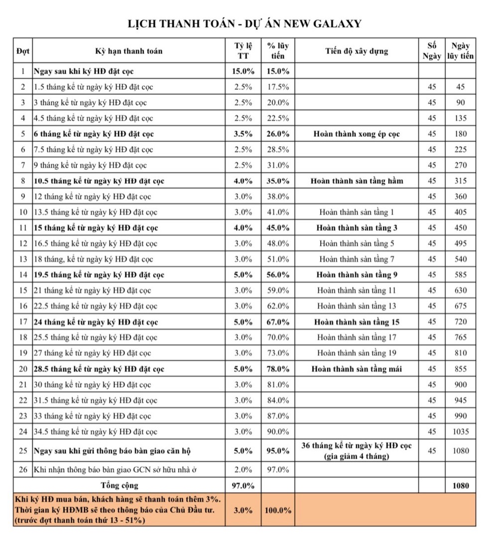 Căn hộ New Galaxy Hưng Thịnh đang rất thu hút nhà đầu tư. Tuy nhiên, người mua thật để ở cũng chiếm tỷ lệ lớn nhất. Hầu hết các khách hàng mua căn hộ Đại Phú điều sẽ quan tâm đến tiến độ thanh toán và vay ngân hàng. Vậy dự án căn hộ New Galaxy Bình Dương đã có ngân hàng nào cho vay chưa. Và tiến độ thanh toán như thế nào để nhà đầu tư và khách hàng mua để có thể chọn phương án phù hợp nhất.